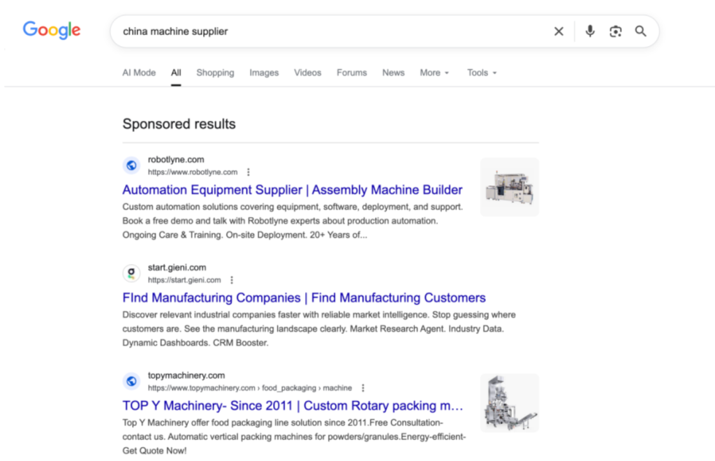 这和搜索平台完全不一样。在搜索引擎上的人,脑子里有一个明确的问题:“工业阀门供应商”“某某设备厂家”,他们是带着工作需求来的。
