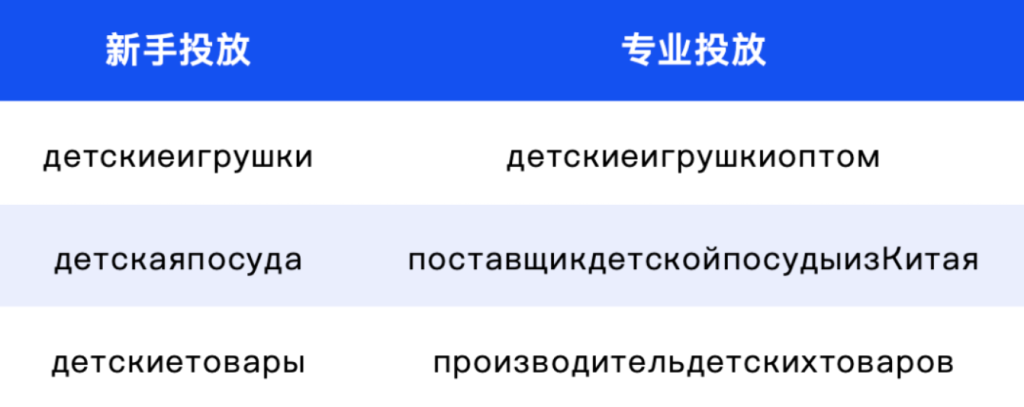 • 最大误区:用C端思维投广,比如:детскиеигрушки(儿童玩具),这类词带来的都是散客。